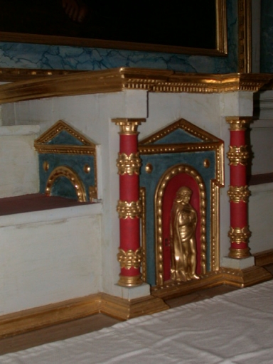 Ensemble de l'autel de la Vierge : autel, 2 gradins d'autel, retable, degré d'autel,