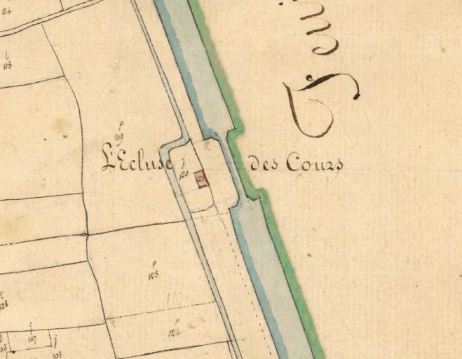 Vue de l'écluse des Cours sur le cadastre napoléonien de 1827Immatriculation