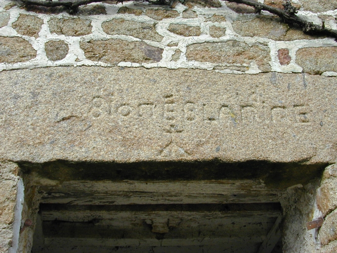 Détail d'une inscription sur un linteau de porte : BIOMEBLAMIME (?)Immatriculation