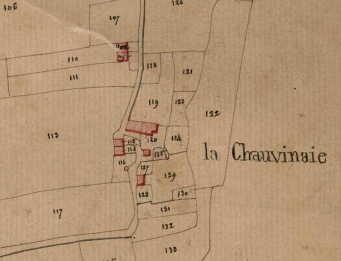 Vue de La Chauvinaie sur le cadastre napoléonien de 1827Immatriculation