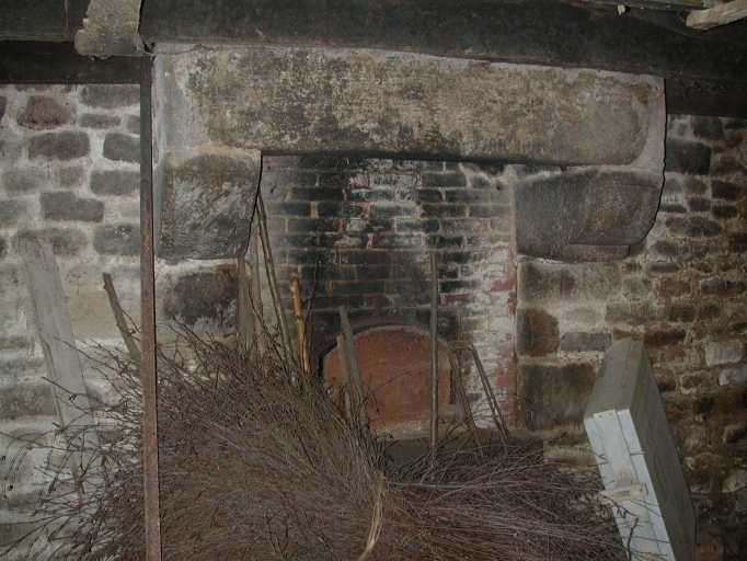 Vue de la cheminée à l'intérieur du fournil : remploi du manoir (?)Immatriculation