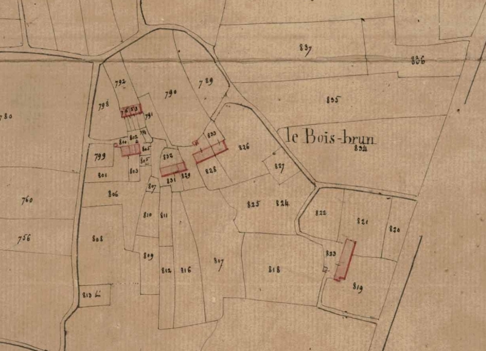 Vue de la ferme sur le cadastre napoléonien de 1827 : parcelle 823Immatriculation