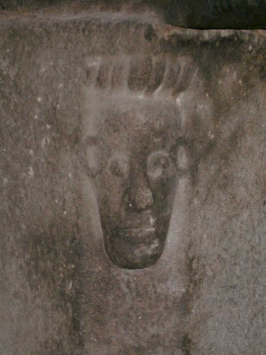 Visage sculpté sous le corbelet de la cheminéeImmatriculation