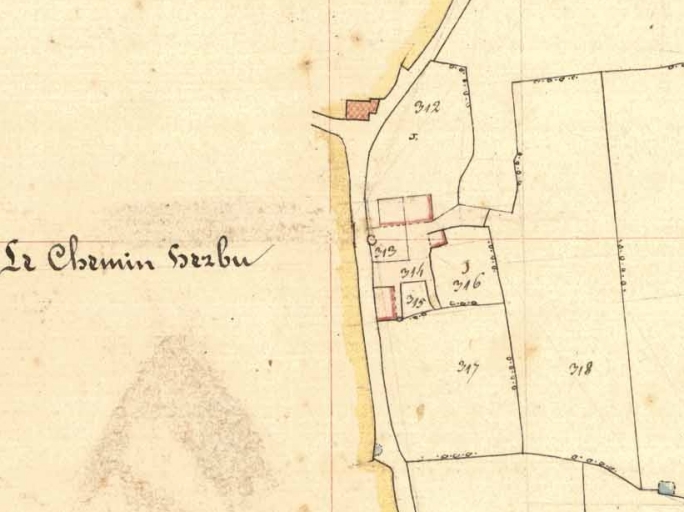 Ferme puis alignement de deux fermes, le Chemin Herbu (Montreuil-le-Gast),