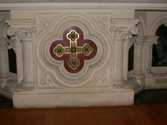 Ensemble du maître-autel : autel, tabernacle, retable, gradin d'autel, paire de statues d'anges,