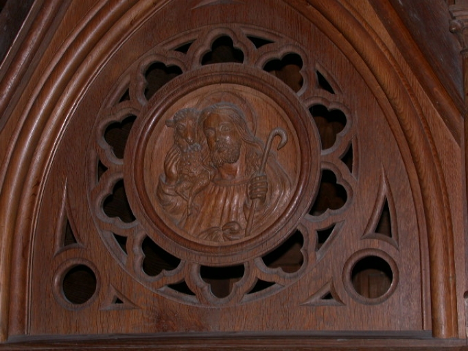 Décor du tympan : Bon bergerImmatriculation