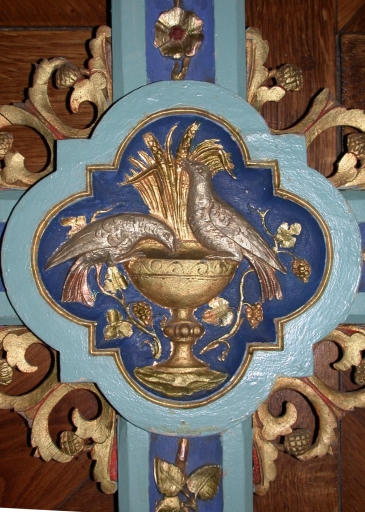 Croix des filles, quadrilobe de la croisée : Colombes d'abreuvant au caliceImmatriculation