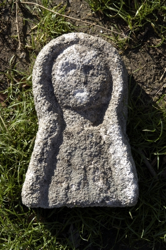 Détail de la sculpture qui ornait un des côtés de la souche de cheminéeImmatriculation