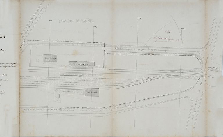 Extrait du plan de la station de Vannes au 1/1000e, 30 juin 1862. AD Morbihan S 56.Immatriculation