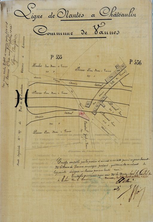 Voie ferrée. Plan des acquisitions dans la rue neuve et le chemin de Ménimur. 1861. AD Morbihan S1315.Immatriculation