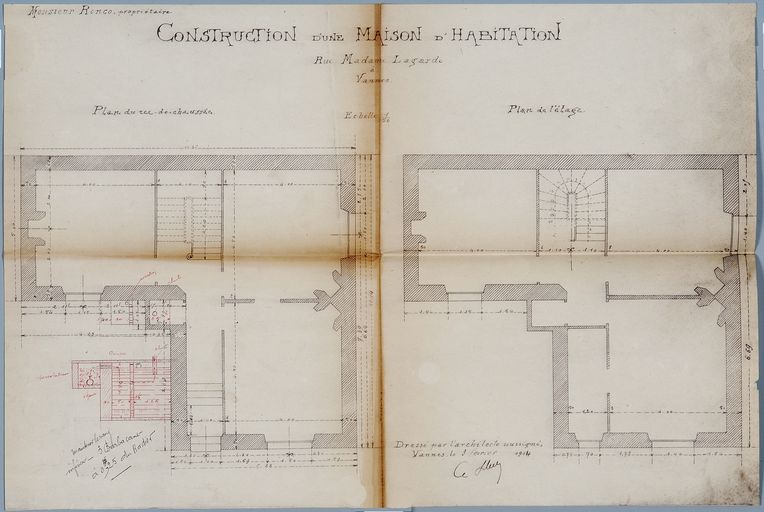 Plans, 3 février 1914. AM Vannes 5I162.Immatriculation