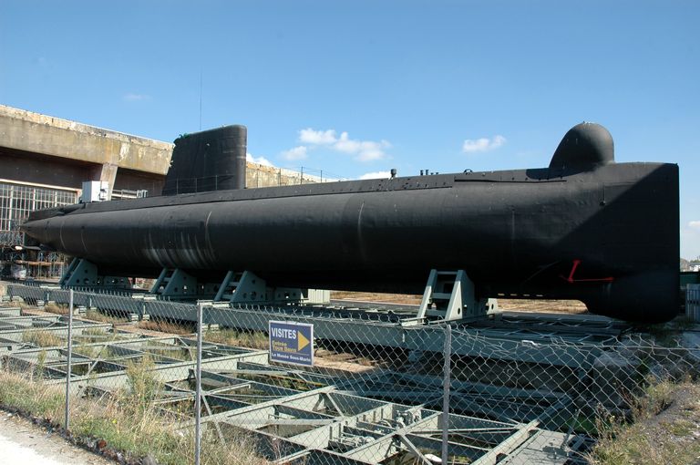 Le sous-marin Flore (S645, lancé en 1960) sur le terre-plein - plate-forme de translation - situé entre les bunkers "KI" et "KII" (2005)Immatriculation