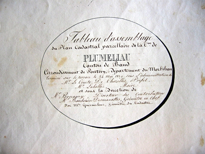 Plan cadastral 1829, tableau d'assemblage, vignette (AD Morbihan 3P 493)Immatriculation