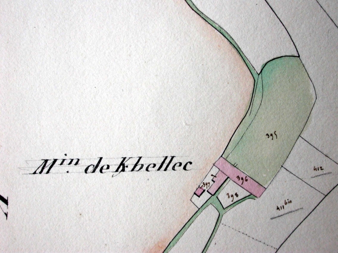 Moulin de Kerbellec. Plan cadastral 1829, section K3 (AD Morbihan, 3P 493)Immatriculation
