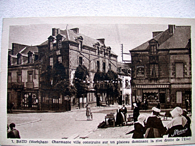 Départ de la rue des Fontaines, côté nord. Vers 1940-1950. Carte postale ancienne, Ed. Nozais. (AD Morbihan, 9 Fi)Immatriculation