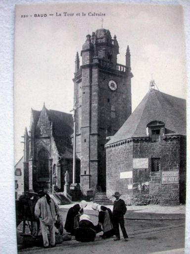 Tour et chevet. Carte postale ancienne, vers 1910. (AD Morbihan, 9 Fi)Immatriculation