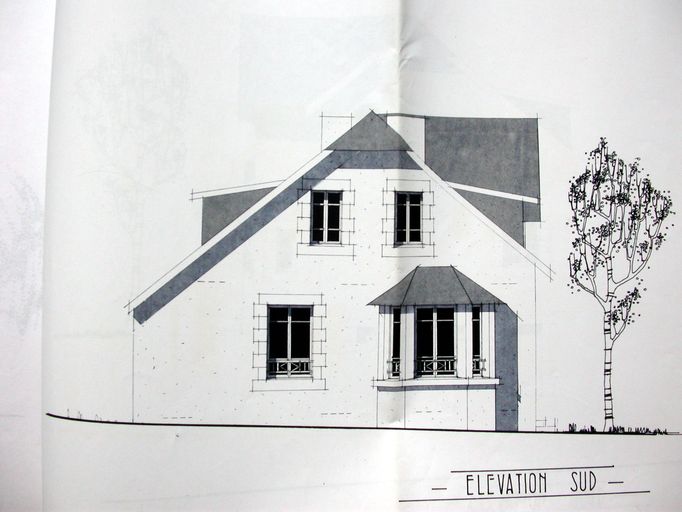 Projet de façade sud, par Arhuis, 1982. Archives privées.Immatriculation
