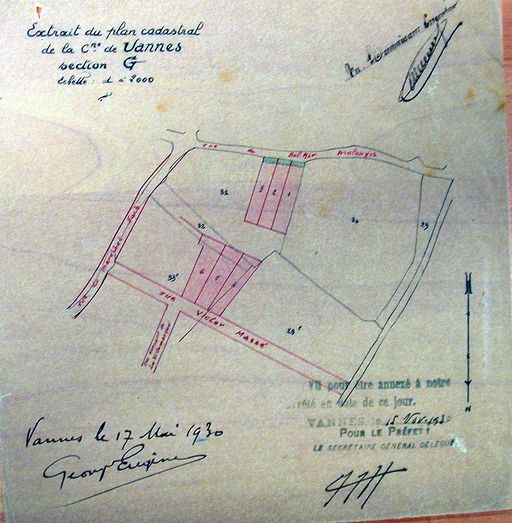 Extrait du plan cadastral du lotissement Eugène, 1930. AM Vannes 1O221.Immatriculation