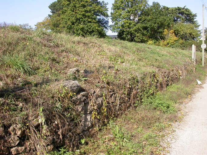 Vue du talus empierré du chemin menant à la ferme.Immatriculation