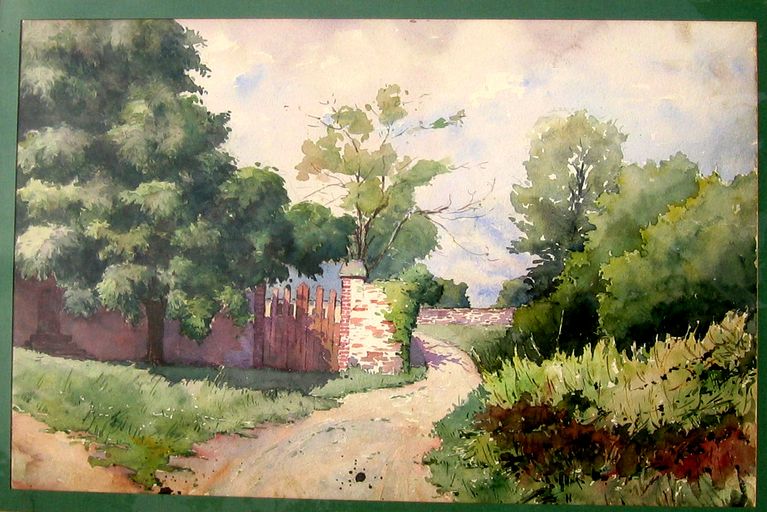 Chemin au nord de la ferme : enclos à piliers. Dessin par le général Koechlin-Schwartz, vers 1930. Archives privées.Immatriculation