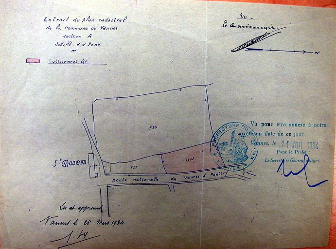 Vue générale : plan de situation du lotissement Gy, 1934. AM Vannes 1O221.Immatriculation