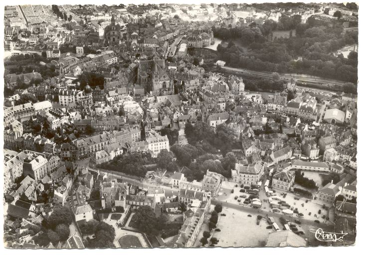 Vue aérienne de la place de la République, vers 1950. Carte postale Cim. Fonds privé.Immatriculation
