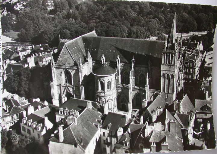 Vue aérienne du quartier de la cathédrale. Collection Lapie. AD Morbihan 5Fi fonds Lapie.Immatriculation