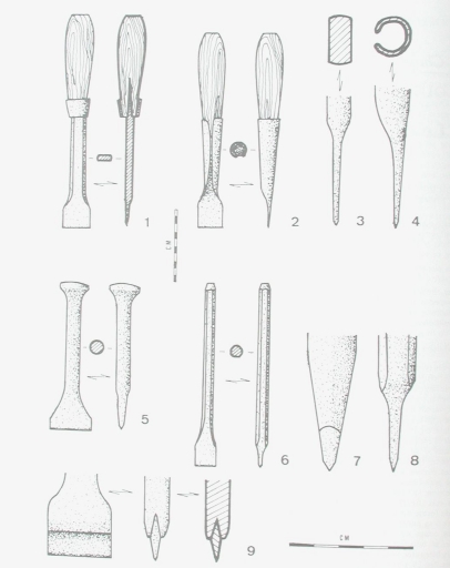 Dans : "L'outillage traditionnel du tailleur de pierre de l'Antiquité à nos jours" /. Jean-Claude Bessac, Paris : Edition du CNRS, 1993, p 122.Dessin.