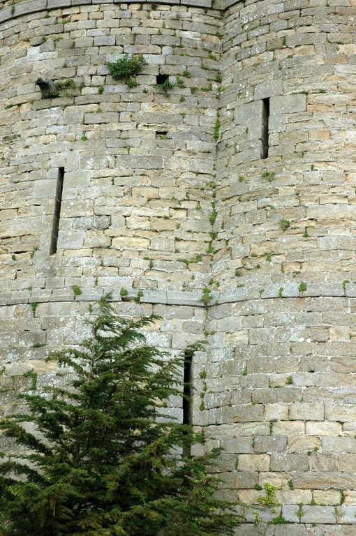 Vue de la tour d'observation et d'artillerie des Hébihens : créneaux de mousqueterie de type archèreImmatriculation