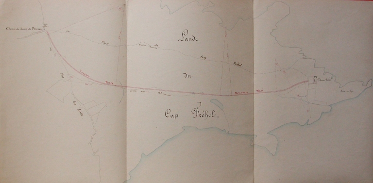 Plan : tracé de la nouvelle route traversant la lande du Cap Fréhel au phare de Fréhel, 1851 (AD 22)Immatriculation