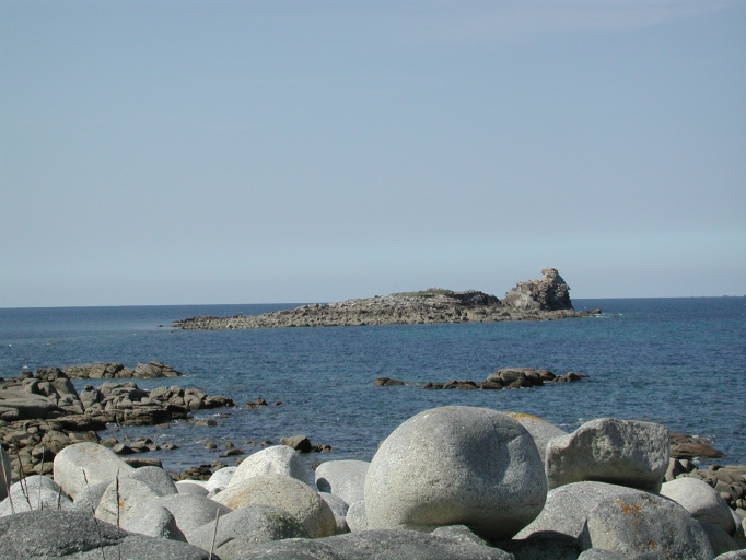 L'île du Rocher du Corbeau par grande marée : le cordon de galets (ancien site d'extraction) est submergéeImmatriculation