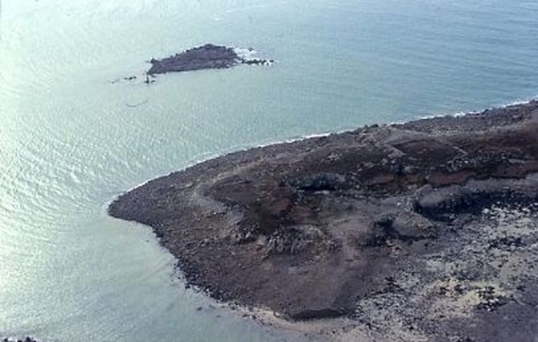 Vue aérienne de l'Île Illeouic, au nord de Enez Iliav : extractions sur l'estran (paris, UTL Lannion)Immatriculation