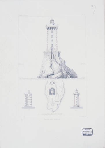 Plan de situation du phare des Triagoz par Dujardin et Pelaud (AD 22).Immatriculation