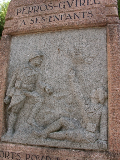 Vue détaillée du monument aux morts : décor exécuté par le sculpteur L. Hernot en 1923Immatriculation