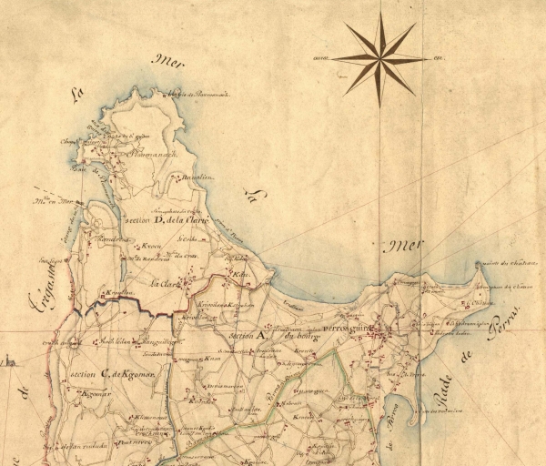Extrait du cadastre de 1819, détails : guérite, corps de garde, poudrière et sémaphores (AD 22)Immatriculation