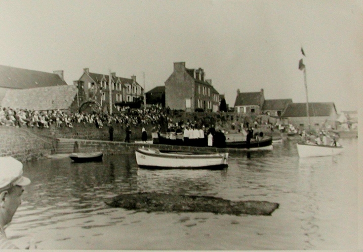 Le canot Aimée-Hilda à la cale de Ty Ruz, les quais étaient jonchés de fleurs d'hortensias, vers 1950-55 (collection particulière)Immatriculation