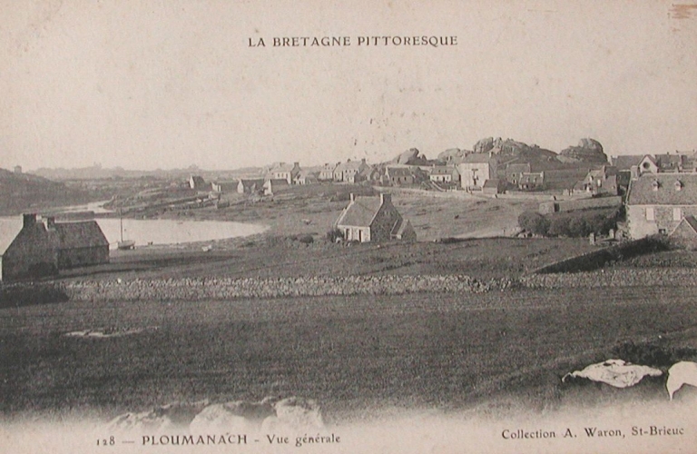 Le front de port de Ploumanac'h, depuis la rive sud : remarquer la limite du DPM, le hameau autour du port et les champs cultivés (AD 22)Immatriculation
