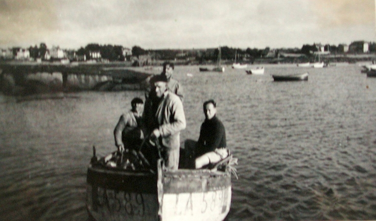 Pierre Le Gaouyat à bord du Fistoullot, LA 589, construit par Adrien Briand pour la famille Rolland, 1938 (collection particulière)Immatriculation
