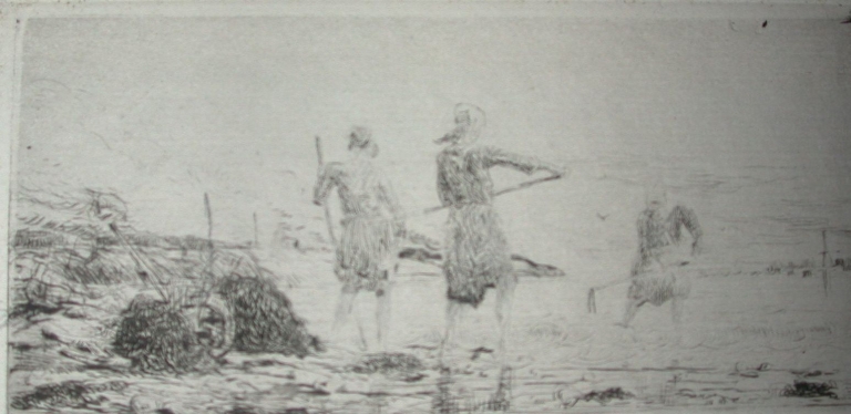 Dessin d'après gravure : le ramassage du goémon d'épave à l'aide de crocs, 4ème quart 19e siècle (Louis-Marie Faudacq, collection particulière)Immatriculation
