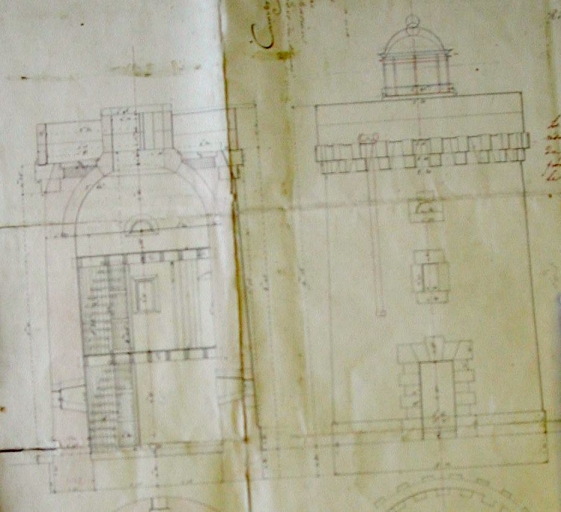 Plan et coupe de la tourelle par Léonor Fresnel, 12 juillet 1832 (AD 22)Immatriculation