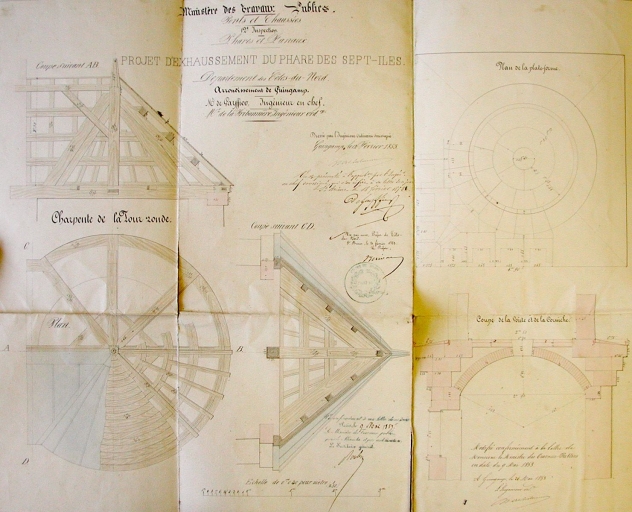 Projet d'exhaussement : la charpente de la tour ronde, 1853 (AD 22)Immatriculation
