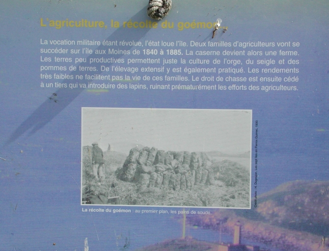 Panneau d'interprétation sur l'agriculture insulaire des Sept-Îles et la récolte du goémon (Conservatoire du littoral)Immatriculation