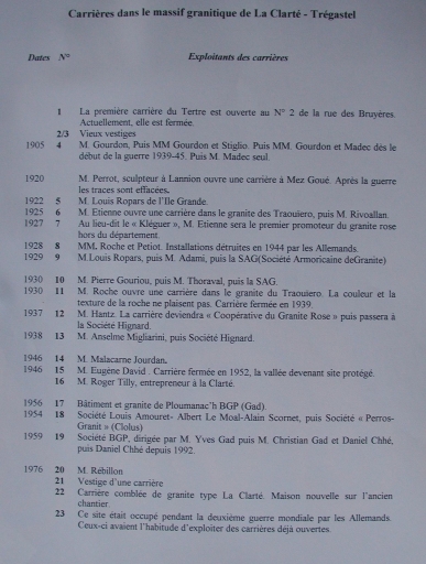 Liste nominative des exploitants des carrières Rose Clarté et Traouïero (UTL Lannion)Immatriculation