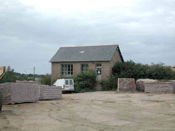 Les anciens bureaux de la Coopérative Le Granit Rose : construction réalisée à l'origine en moellons ordinaires et refaite en moellons de granit pour la façadeImmatriculation