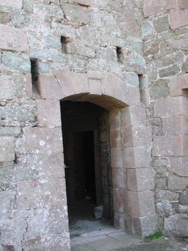 Façade nord : vue de l'entrée fortifiée de la redoute, réduit, remarquer l'assomoir au-dessus de la porte d'entréeImmatriculation