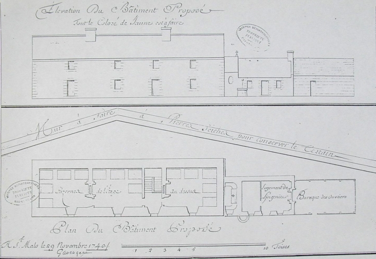 Le plan de la caserne de l'Île aux Moines par Garangeau, daté du 27 novembre 1740 (AD 35)Immatriculation