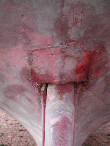 Détail de l'étambot avec le tube de jaumière pour le gouvernail : le mître ou chapeau d'évêqueImmatriculation