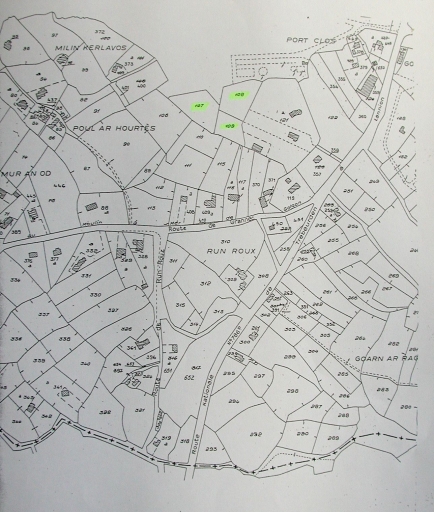 Extrait du cadastre de Trégastel : parcelles cadastrées du marais de Kerlavos, section A 107-108-109 (Conservatoire du Littoral)Immatriculation