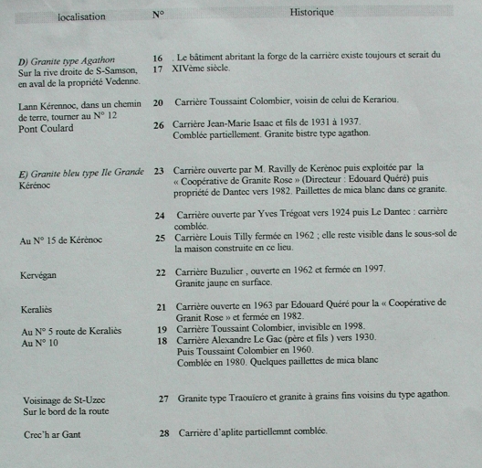 Liste des carrières de granite dans les communes de Trégastel et de Pleumeur-Bodou (UTL lannion)Immatriculation