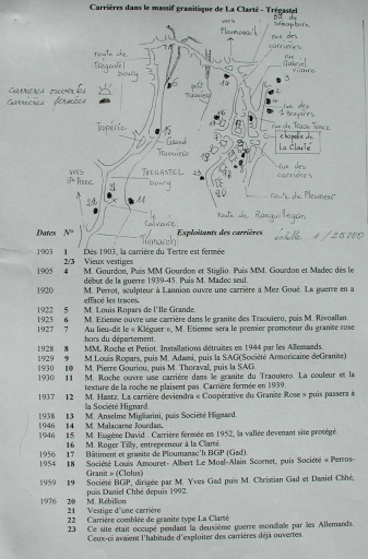 Liste et carte des carrières dans le massif granitique de La Clarté Trégastel (UTL lannion)Immatriculation